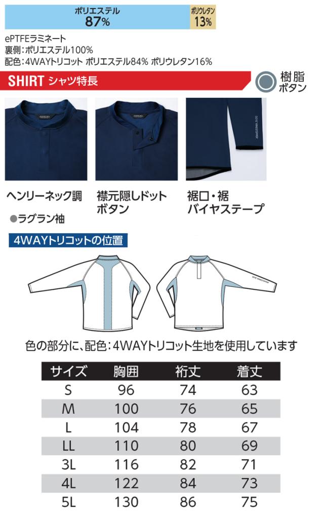 作業服 作業着 旭蝶 防風 秋冬 インナー 長袖 ゴアテックス GORE WINDSTOPPER ウインドストッパーシャツ 51034 サイズ4L・5L アウトドア
