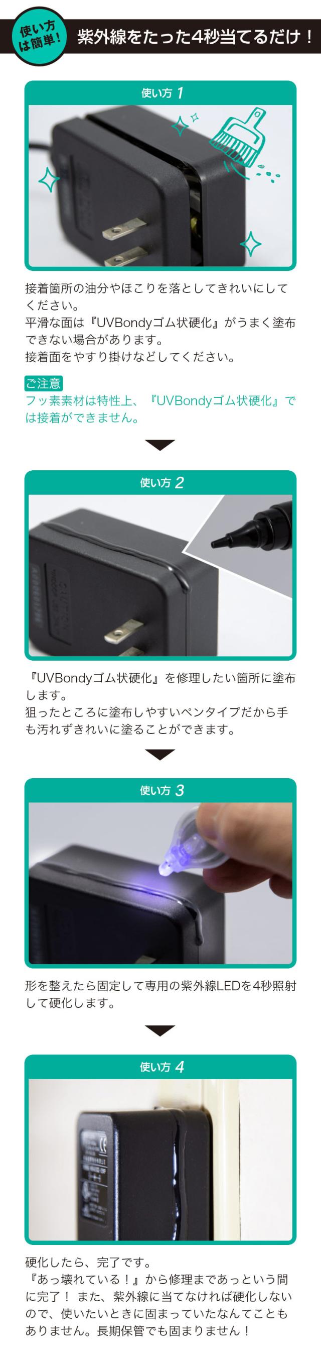 | 商品名 | UV Bondy(ユーブイ・ボンディ)ゴム状硬化 スターターキット |