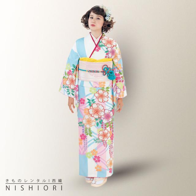 訪問着 レンタル 着物 貸衣装 フルセット HL アッシュエル ブランド 水色 No.0031