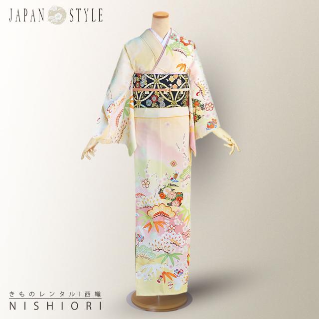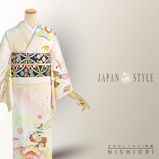 訪問着 レンタル 着物 貸衣装 フルセット JAPAN STYLE ブランド クリーム 淡桃 松竹梅No.0071