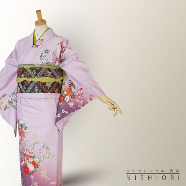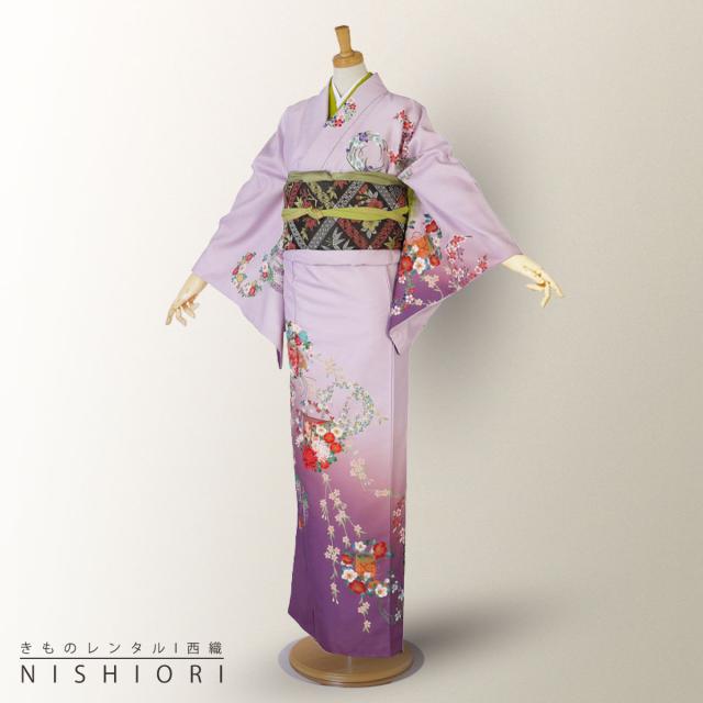 訪問着 レンタル 着物 貸衣装 フルセット HL アッシュエル紫 ラベンダー 扇No.0086