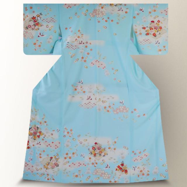 訪問着 レンタル 着物 貸衣装 フルセット JAPAN STYLE ブランド 青海波 ブルー 水色No.0106
