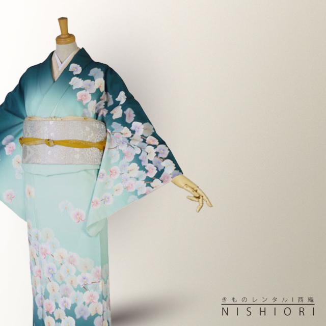 訪問着 レンタル 着物 貸衣装 フルセット 濃緑 蘭 薄緑No.0113