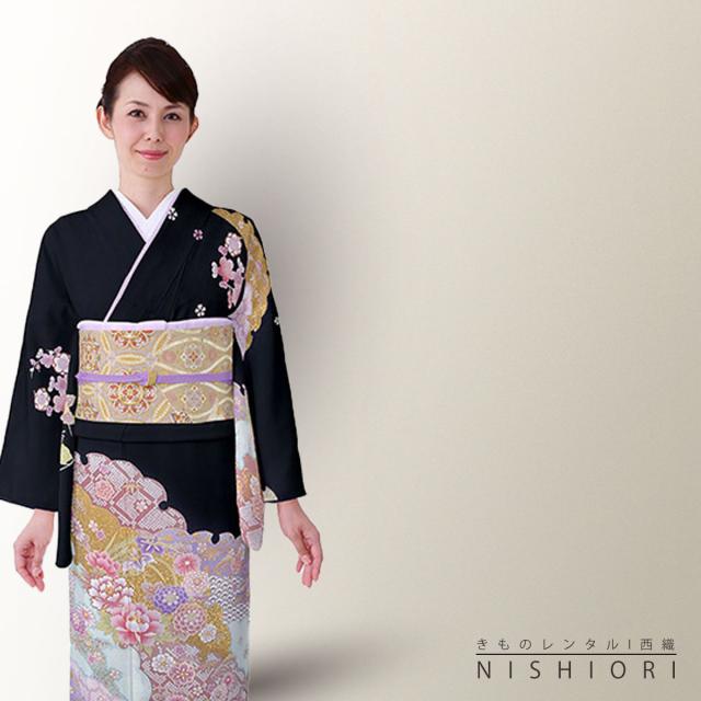 訪問着 レンタル 着物 貸衣装 フルセット 濃紺 ピンクNo.0137