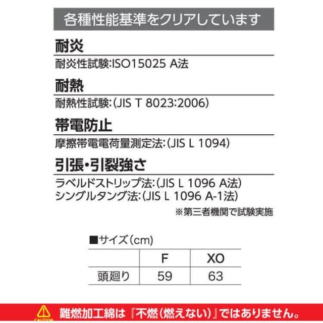 防炎作業服 HOOH 難燃溶接帽子(ツバ有)421 綿100% 耐炎 耐熱 制電性 村上被服