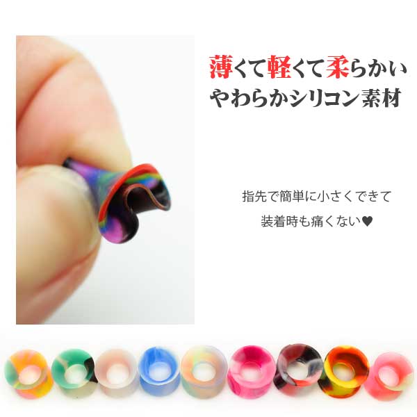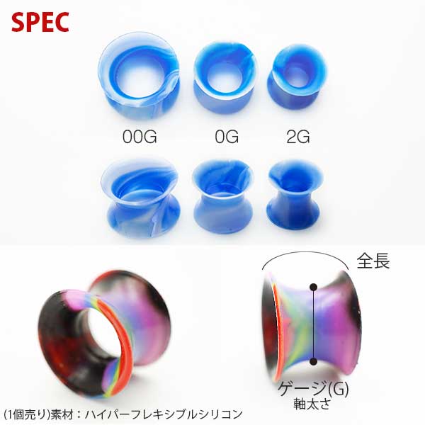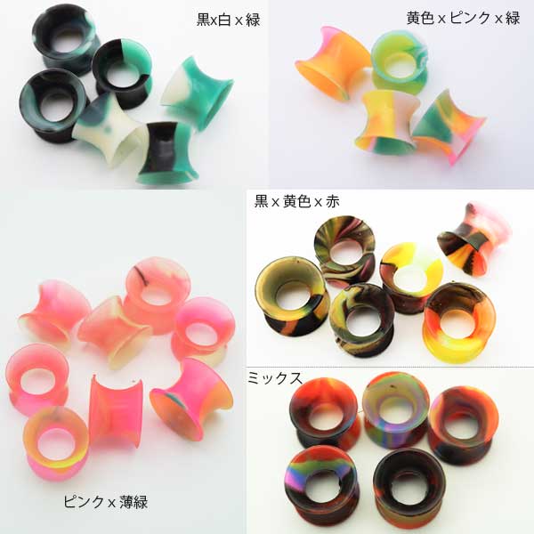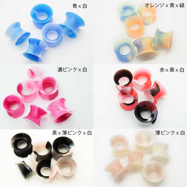 本日P2倍 2G 0G 00G ピアス ボディピアス ミックスカラー 柔らかい シリコン ダブルフレア アイレット シリコンプラグ 拡張器
