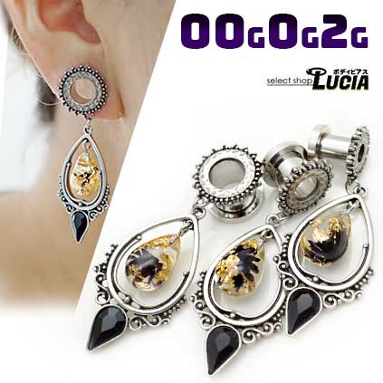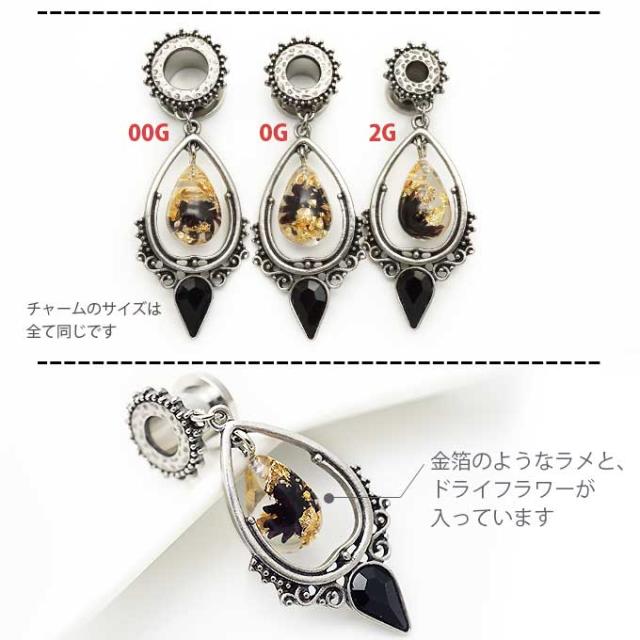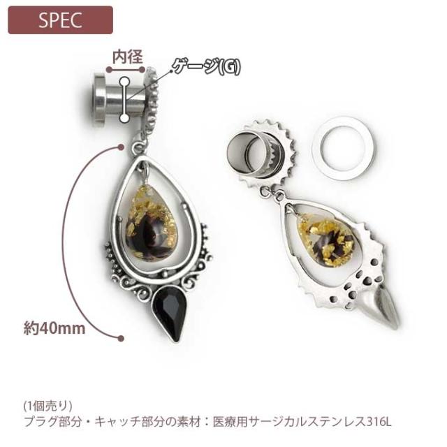 本日P2倍 2G 0G 00G ピアス ボディピアス フレッシュトンネル アイレット プラグ 揺れる 琥珀色 チャーム フレーム 迫力 大きい 金属アレルギー対応 316L