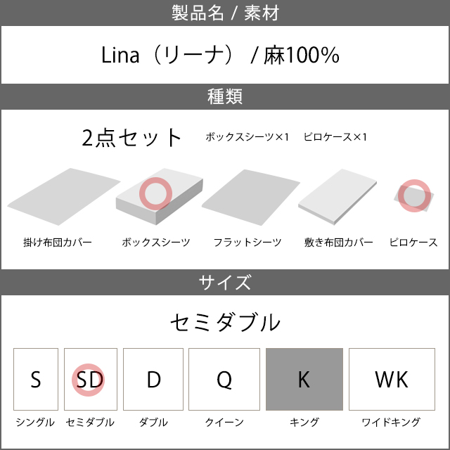 日本製 ボックスシーツ と 枕カバー 2点セット セミダブル 麻 100% セット 和式 ( ボックスシーツ と 枕カバー ) リネン 北欧 おしゃれ カバーセット 布団カバーセット シーツカバーセット 抗菌 防臭 エコテックス認証 肌に優しい オールシーズン リーナ