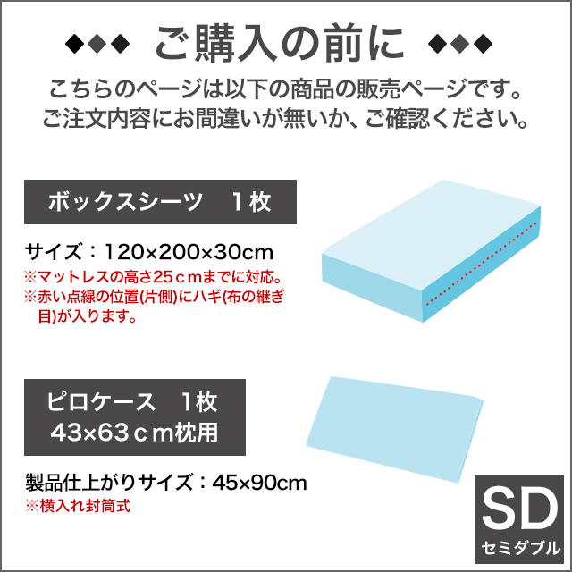 ・2点セット ボックスシーツ1枚+ピロケース1枚 シングル用 ・2点セット ボックスシーツ1枚+ピロケース1枚 セミダブル用 ・3点セット ボックスシーツ1枚+ピロケース2枚 ダブル用 ・2点セット フラットシーツ1枚+ピロケース1枚 シングル用 |
