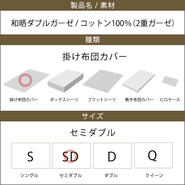 送料無料 和晒ダブルガーゼ 掛け布団カバー セミダブルサイズ