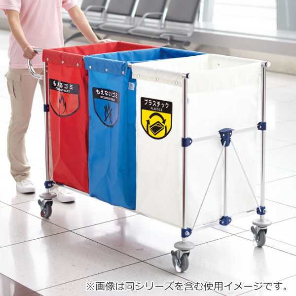 別売のフレームにセットして使えば、ゴミの回収や運搬が効率よくできます。商業施設や公共施設、オフィス内での分別にオススメです。