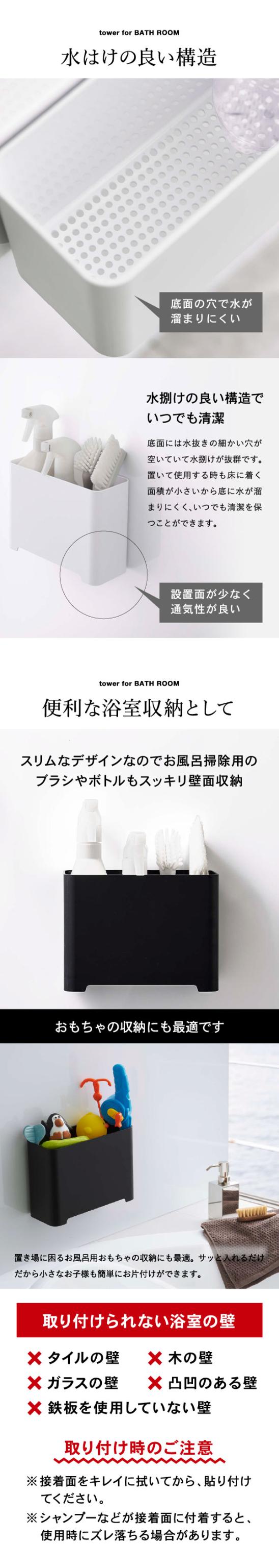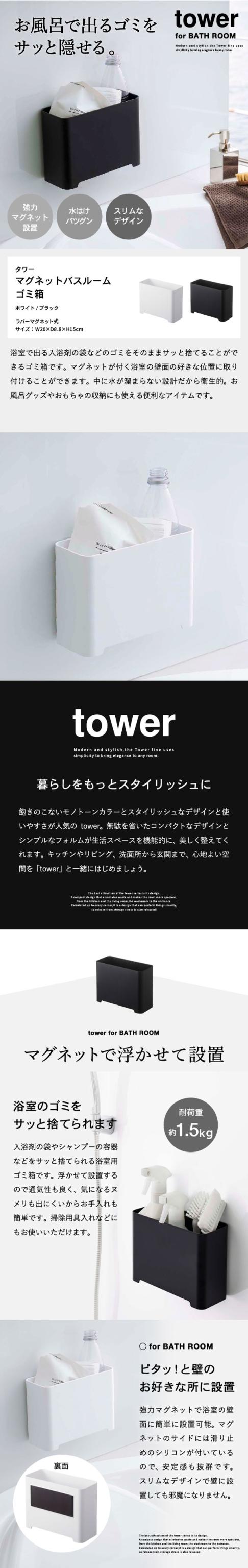 tower 山崎実業 タワー マグネットバスルームゴミ箱 ホワイト ブラック 5540 5416 浴室収納 お風呂 おもちゃ収納 掃除用具 収納 磁石 壁面収納 浮かせる収納 タワーシリーズ マグネット 子ども 誕生日プレゼント