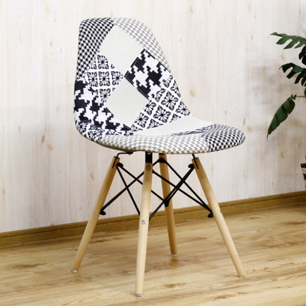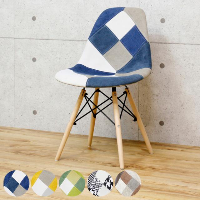 チェア 座面高46cm パッチワーク イームズ風 ( ダイニングチェア イス 椅子 チェアー リビングチェア デザインチェア 1人掛け 木製 天然木 肘なし ダイニングチェアー おしゃれ ダイニング リビング パーソナルチェア )