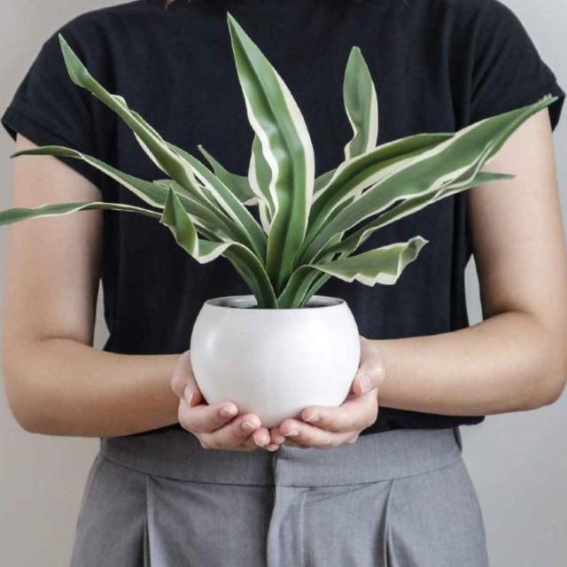 本物のように葉や茎の細かな部分まで丁寧に表現されています。植物だけでなく、雰囲気を引き立てる高級感のある陶器鉢までこだわったワンランク上のデザインです。