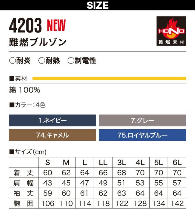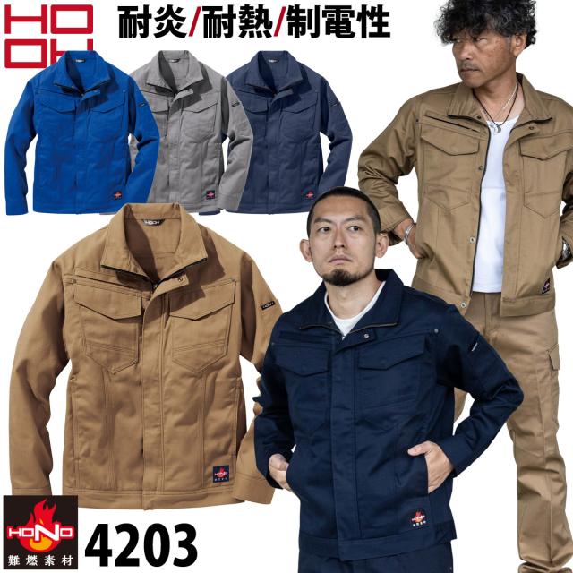 村上被服 難燃ブルゾン 4203 作業服 作業着 綿100% 耐炎 耐熱 制電性 オールシーズン 2021年 秋冬 新作 おしゃれ かっこいい メンズ 鳳皇 HOOH