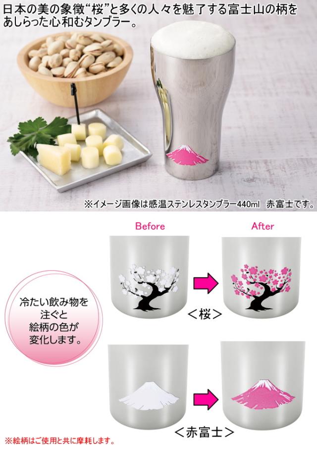 燕熟の技 感温ステンレスタンブラー 440ml 赤富士 2個セット EJK-701 日本製 燕三条産 送料無料 コップ ステンレス セット