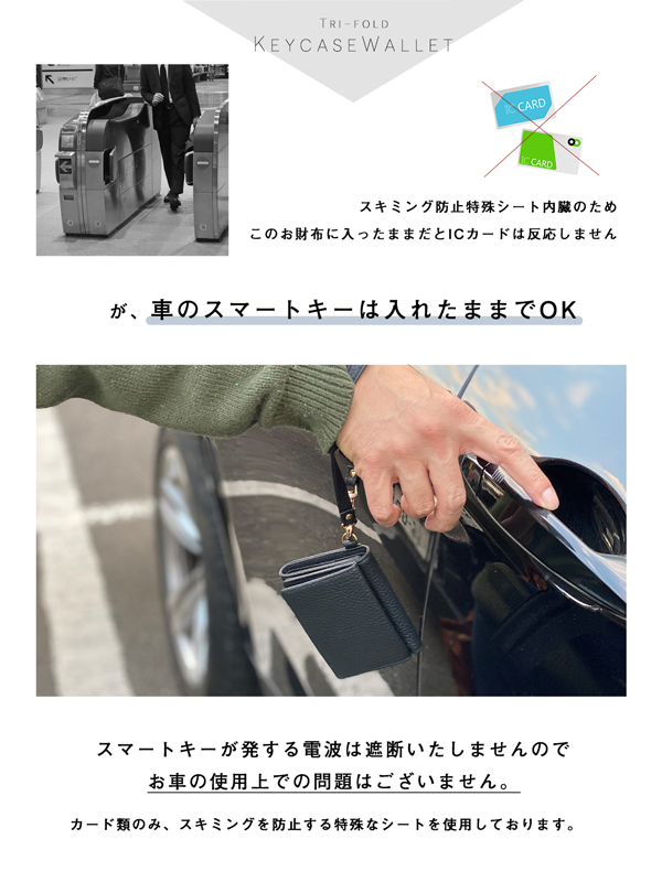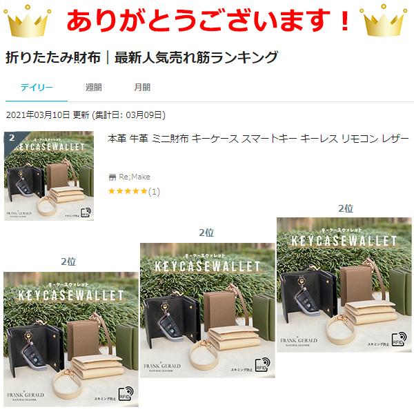 【今なら半額!3,400円】ミニ財布 キーケース 奇跡のリング スマートキー キーレス リモコン 車 小さい財布 牛本革 スキミング防止 ストラップ付 キーウォレット FRANK GERALD 三つ折り RFID レザー 財布 レディース メンズ プレゼント ギフト