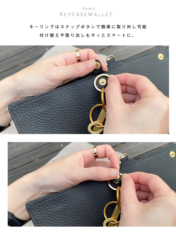 キーリングはスナップボダンで簡単に取り外し可能。