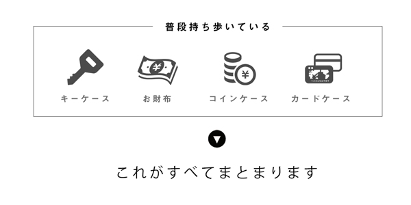 財布としての機能を損なうことなくお札・コイン・カード・鍵すべてを