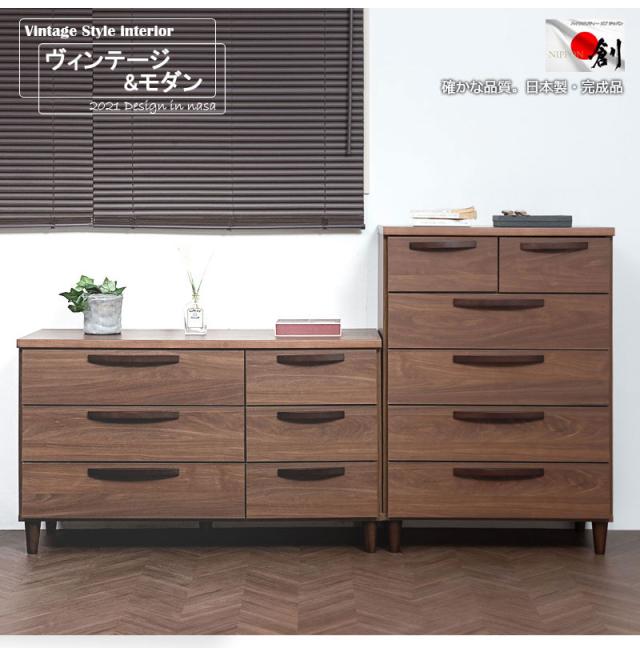 日本製 ヴィンテージスタイル ハイチェスト 幅70cm ブラウン チェスト 完成品 天然木 ヴィンテージ 北欧 収納 幅70 おしゃれ 収納 衣類収納 木目調 棚 収納棚 リビング 国産(代引不可)【送料無料】