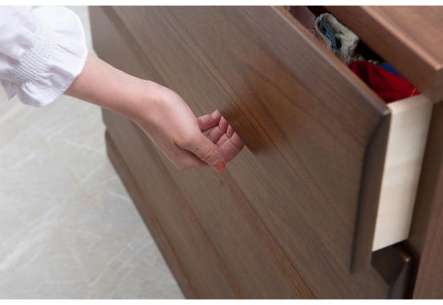大引出しにはレールが取り付けられており、タップリ収納した引出しの開閉も楽々。