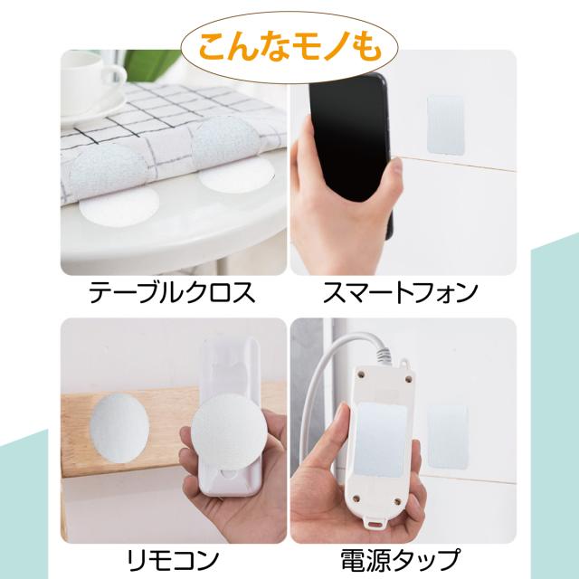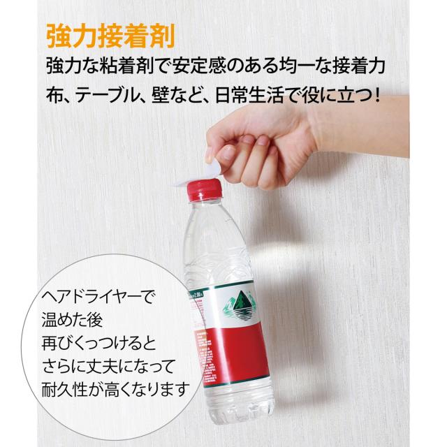 強力な粘着剤で安定感のある均一な接着力。布、テーブル、壁など、日常生活で役に立ちます。