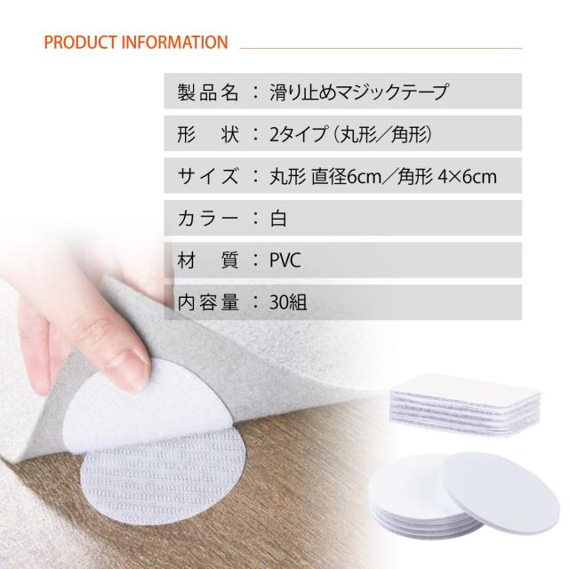 マジックテープ 両面テープ 超強力 30枚セット 丸形 角形 強力 防災対策 魔法のテープ 魔法テープ nonslip-tp
