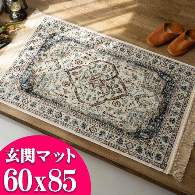 玄関マット 室内 60×85 ヴィンテージ アンティーク おしゃれ シルク タッチ ペルシャ 絨毯 柄 高級 ラグ ベルギー製 ベージュ 茶 ヨーロピアン クラシック モケット織り ラグ カーペット 送料無料