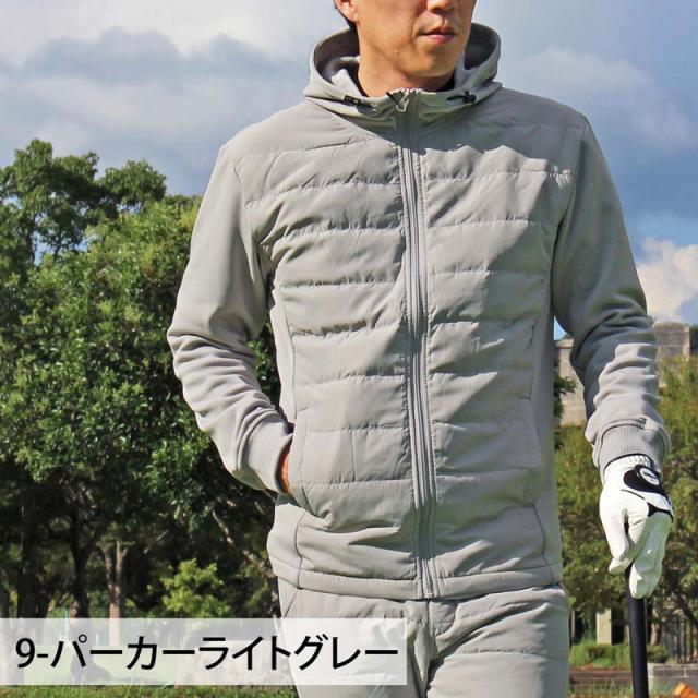 | 特徴 | スタンドネックとパーカーデザインの2タイプ ダウンジャケットに袖と襟、後身頃にジャージ素材を 切り替えたゴルフジャケット。 裏起毛ボアフリースであったかいアウターブルゾンです。 ストレッチの効いた心地の良い素材で体にフィットし 型崩れしにくく動きやすく快適プレー。 アクティブに活用でき、ゴルフ以外のスポーツや アウトドアにも活用できます。 軽量で動きやすく暖かい異素材切替ゴルフウェア。 |