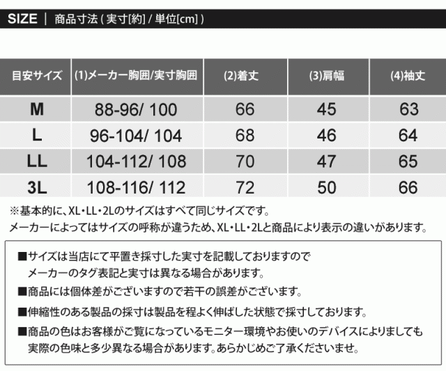 ※基本的に、XL・LL・2Lのサイズはすべて同じサイズです。