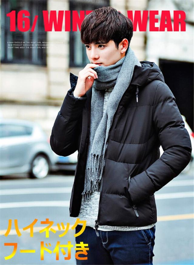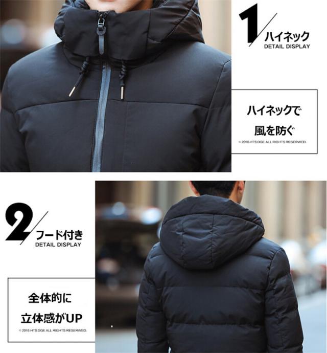 ダウンジャケット メンズ ダウンコート ジャケット ハイネック フード付き ストレッチ 中綿ダウンジャケット