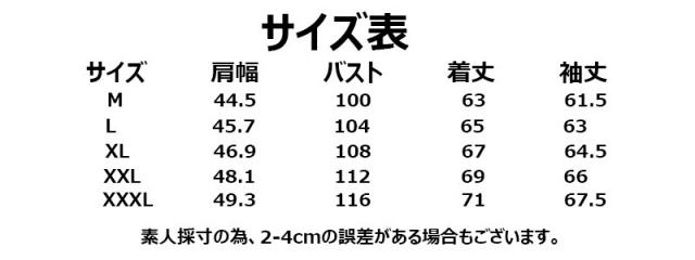 | サイズについての説明 | (サイズ) M/L/XL/2XL/3XL 約(cm) |
