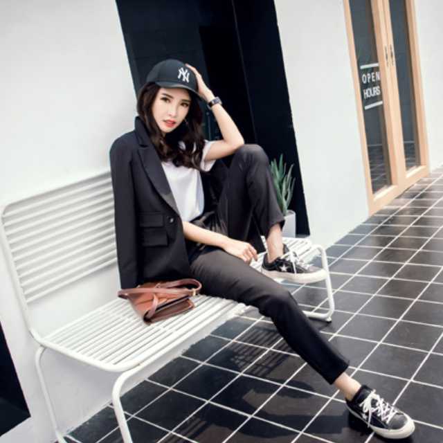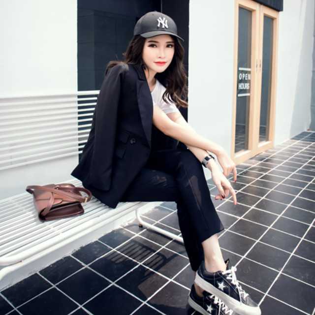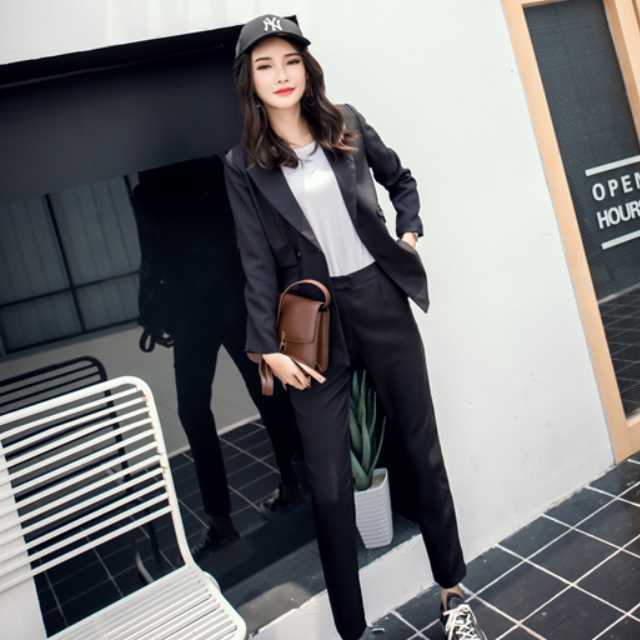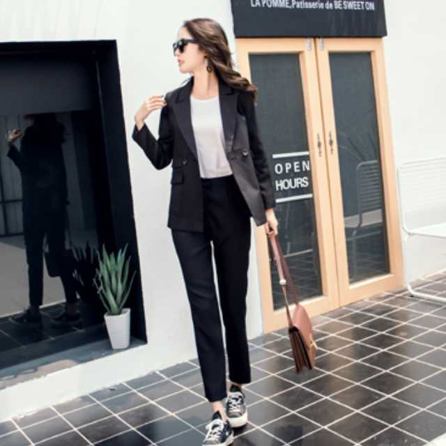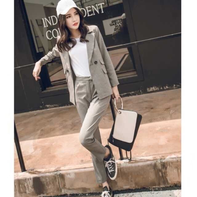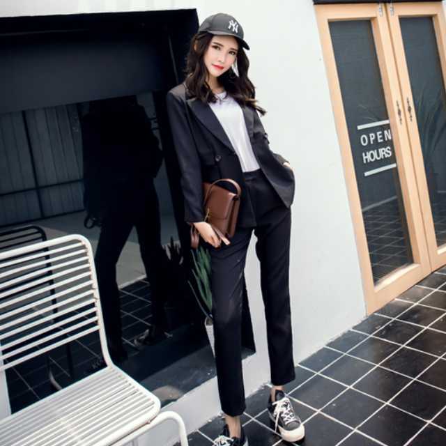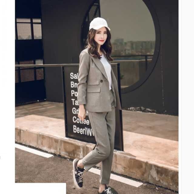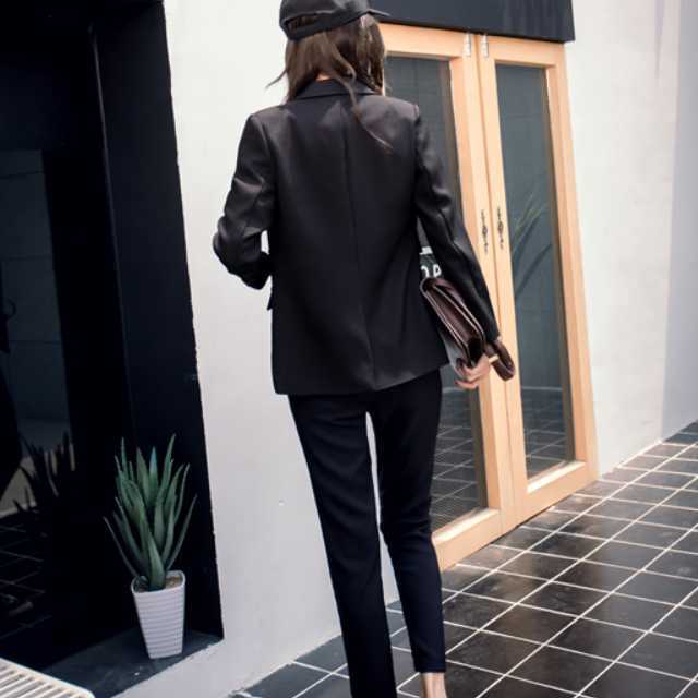 すっきりとしたデザインでフォーマルにもカジュアルにも着こなせるパンツスーツのセットアップ♪