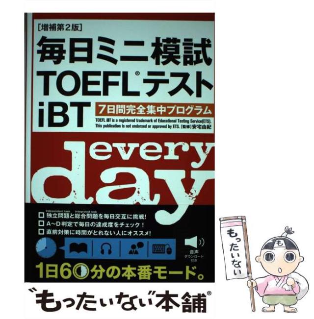商品名:【中古】 毎日ミニ模試TOEFLテストiBT 7日間完全集中プログラム 増補第2版 / 安宅由紀 / テイエス企画 [単行本(ソフトカバー)]【メール便送料無料】