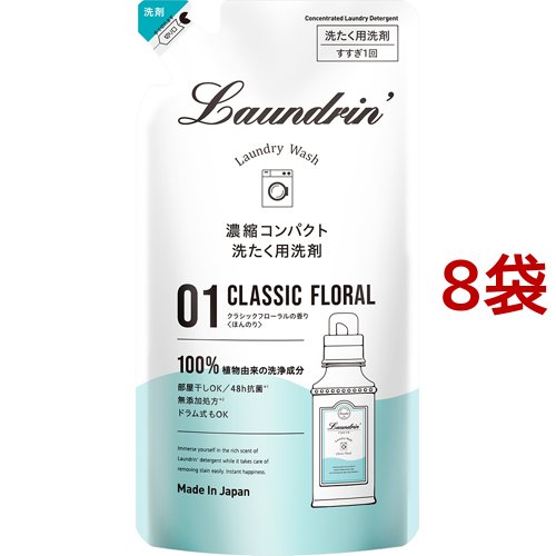 ランドリン WASH 洗濯洗剤 濃縮液体 クラシックフローラル 詰め替え(360g*8袋セット)[洗濯洗剤 その他]