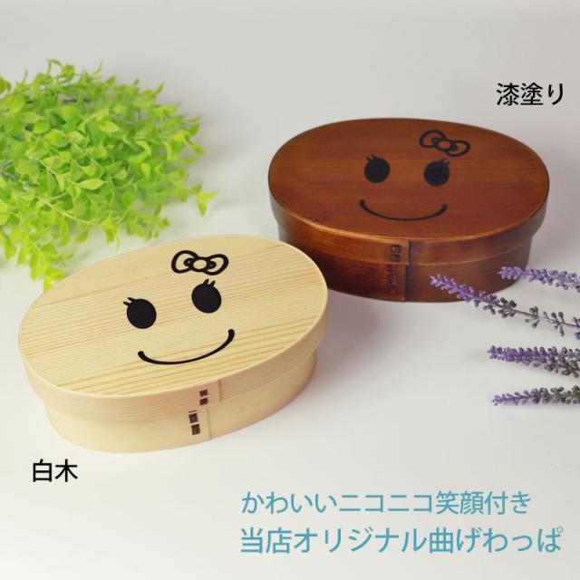 曲げわっぱ弁当箱 500ml お弁当箱 まげワッパちゃん 曲げわっぱ 弁当箱 一段 白木 漆塗り かわいい 入学 新生活 まげわっぱ 子ども 男の子 女の子 男子 女子 1段 ランチボックス 送料無料 ニコニコ にこにこ 日本国内加工品 k_name