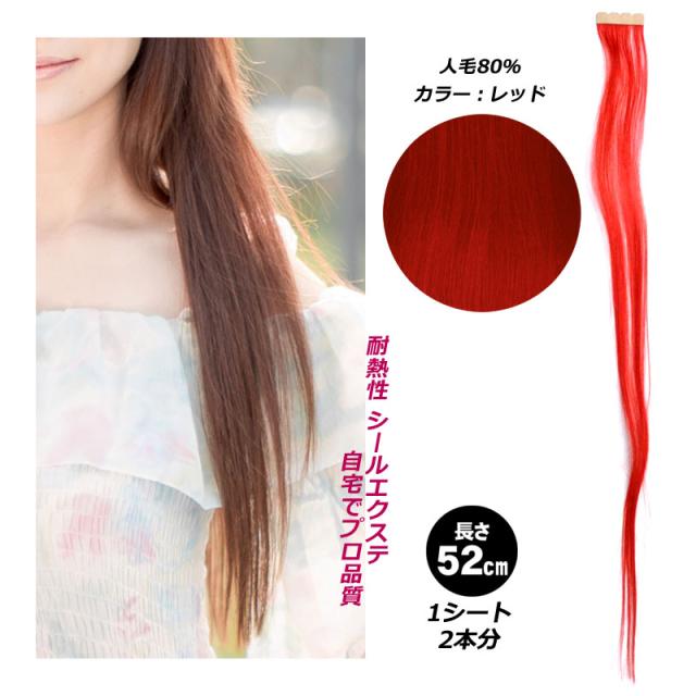 [ レッド 赤 ] シール エクステ 人毛 ロング ヘアエクステ カラーエクステ 長さ52cm 1枚