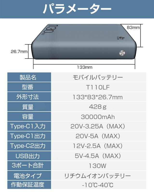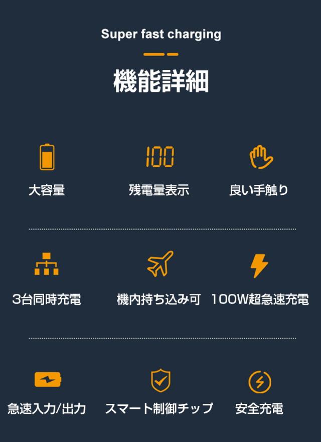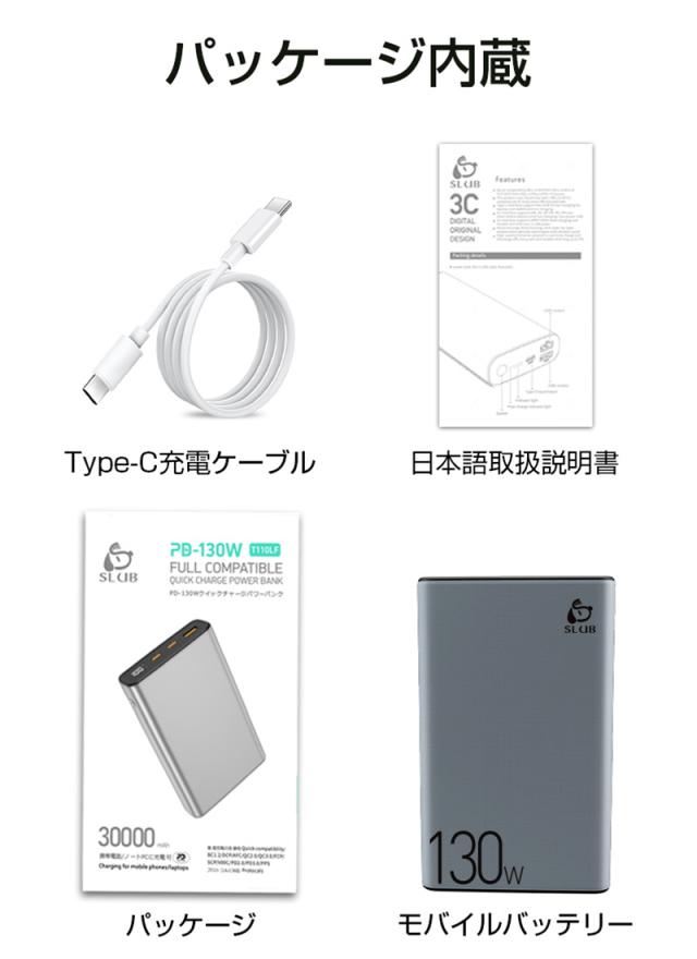 【パッケージ内容】30000mAhモバイルバッテリー*1、充電ケーブル*1、日本語取扱説明書*1