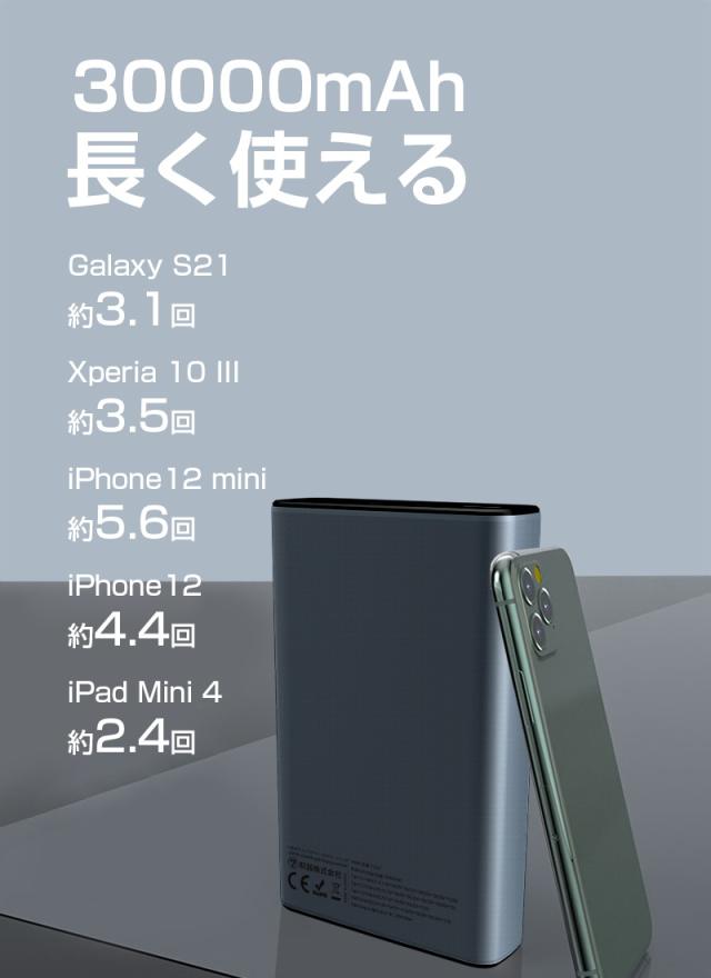 モバイルバッテリー 30000mAh 大容量 iPhone17/16/15充電 防災電源 100W高速充電 ポータブル パワーバンク ノートパソコン充電 ポリマー電池 PD対応 QC3.0 【PL保険加入済み製品・安心】