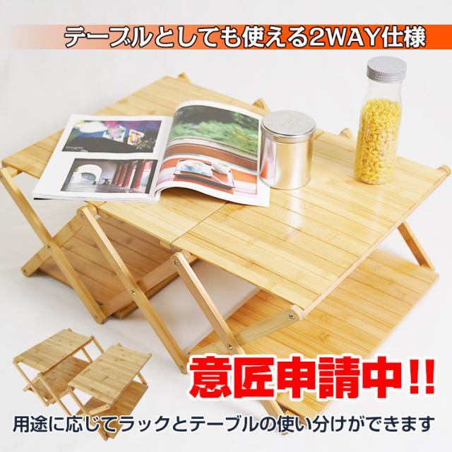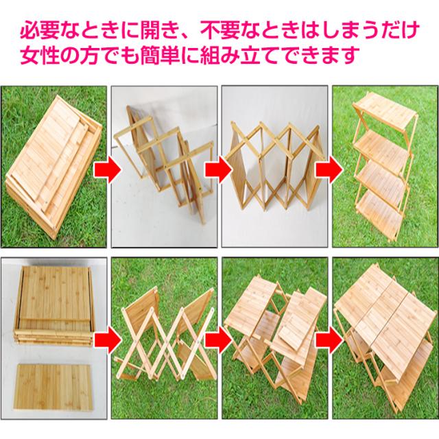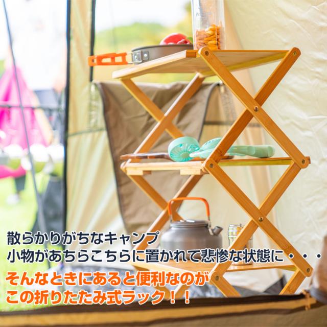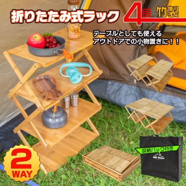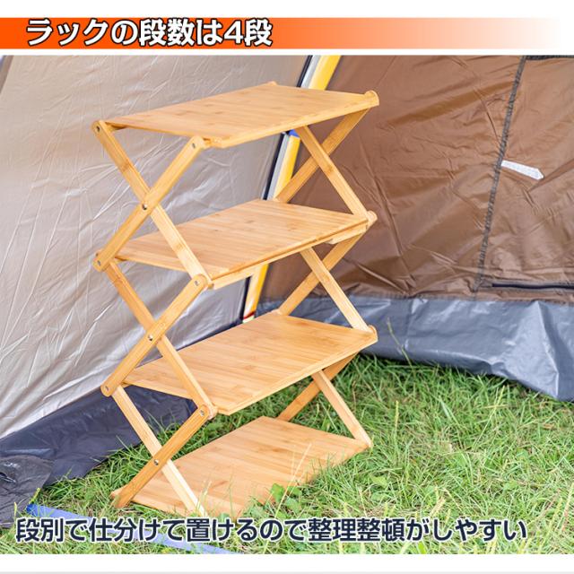 棚 ラック テーブル 折りたたみ 4段 アウトドア キャンプ 収納 竹製 バンブーラック 小物置き コンパクト ディスプレイ ガーデン ad179-1