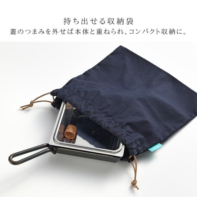 収納袋付きで、蓋のつまみを外せば本体と重ねられコンパクト収納に。アウトドアへの持ち出しもOK。