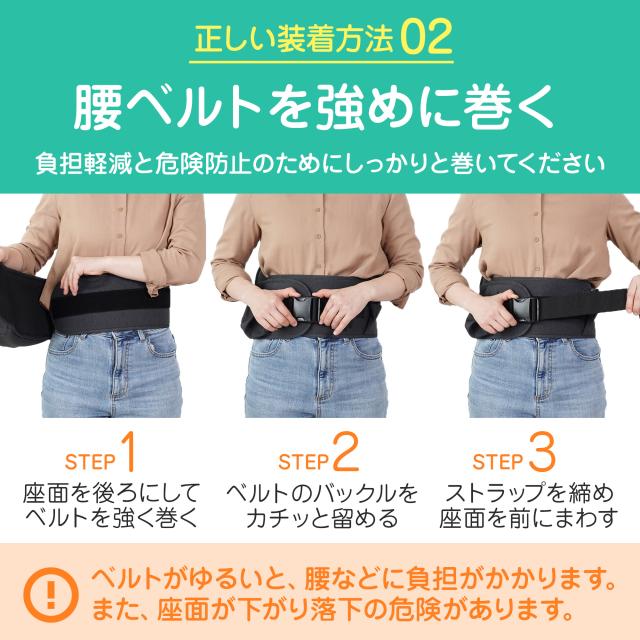 ウエスト60センチから115センチまで対応できるよう改良したので、幅広いお客様にご使用いただけます。