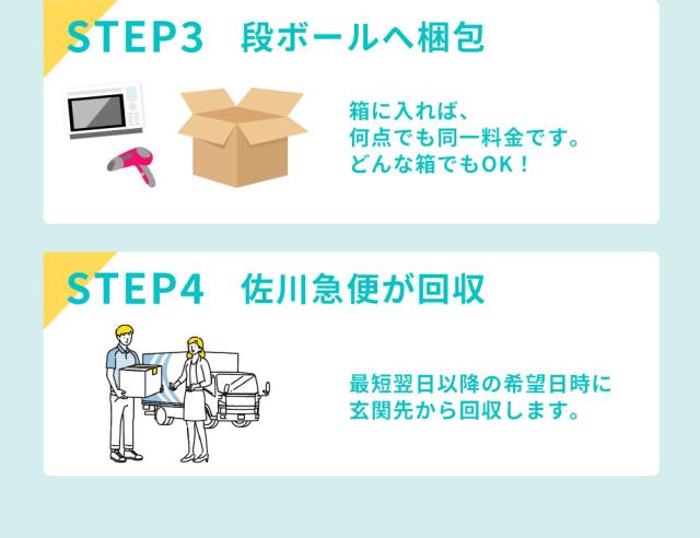 ★ 箱にどれだけ入れても1箱2380円(税込)!ご希望の日時に合わせてご自宅から宅配便で回収します。