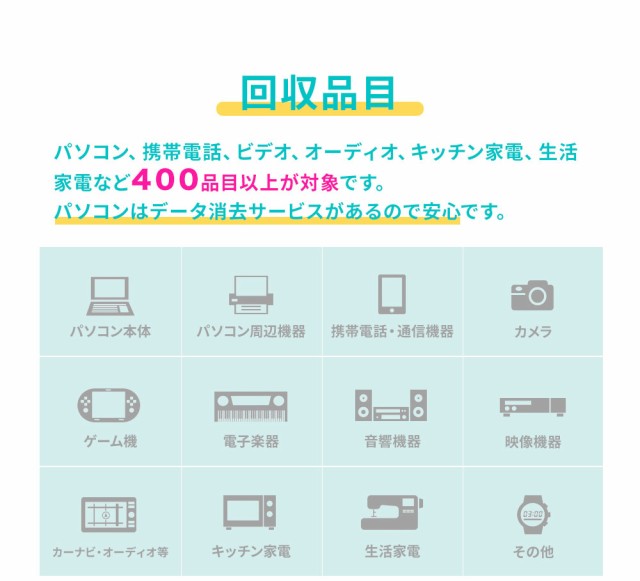 ★ パソコン、携帯電話、ビデオ、オーディオ、キッチン家電、生活家電など400品目以上が回収対象です。