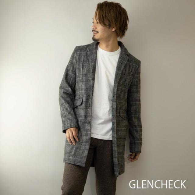 チェスターコート★メンズ グレー×黒 チェック ロング 細身 アウター ウールコート オーバーコート 送料無料 ST33332-GC