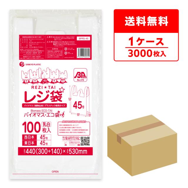 BPRS-45 バイオマスプラスチック使用レジ袋 西日本45号(東日本45号) 0.019mm厚 乳白 100枚x30冊 厚手タイプ ブロック有 送料無料
