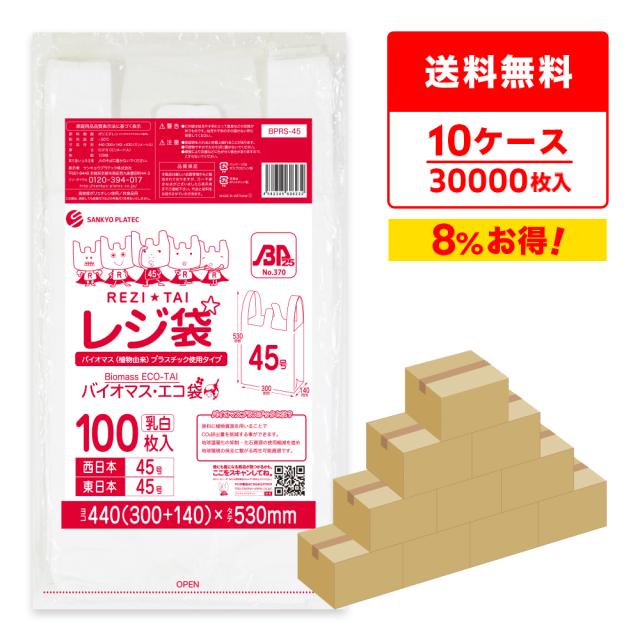 【まとめて10ケース】BPRS-45-10 バイオマスプラスチック使用レジ袋 西日本45号(東日本45号) 0.019mm厚 乳白 100枚x30冊x10箱 厚手タイプ ブロック有 送料無料