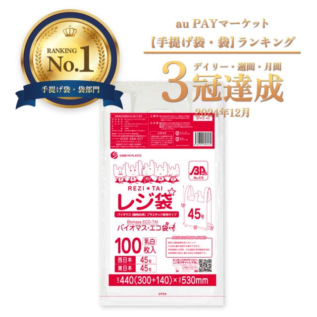 【小箱販売】BPRS-45kobako バイオマスプラスチック使用レジ袋 西日本45号(東日本45号) 0.019mm厚 乳白 100枚x10冊 厚手タイプ ブロック有 送料無料