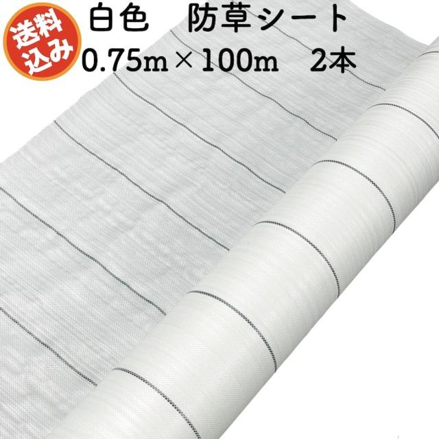 防草シート 白色(サンホワイト) 0.75m×100m 2本セット 抗菌剤 UV剤入り 反射 草抑え 除草シート 雑草対策 資材 太陽光 野菜 畑 農業 農家 園芸 マルチング