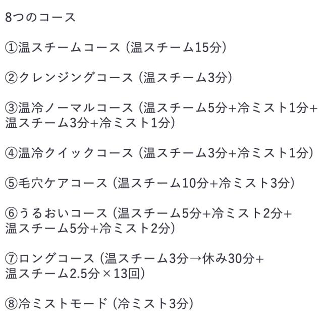 3.温冷ノーマルコース(温スチーム5分+冷ミスト1分+温スチーム3分+冷ミスト1分)